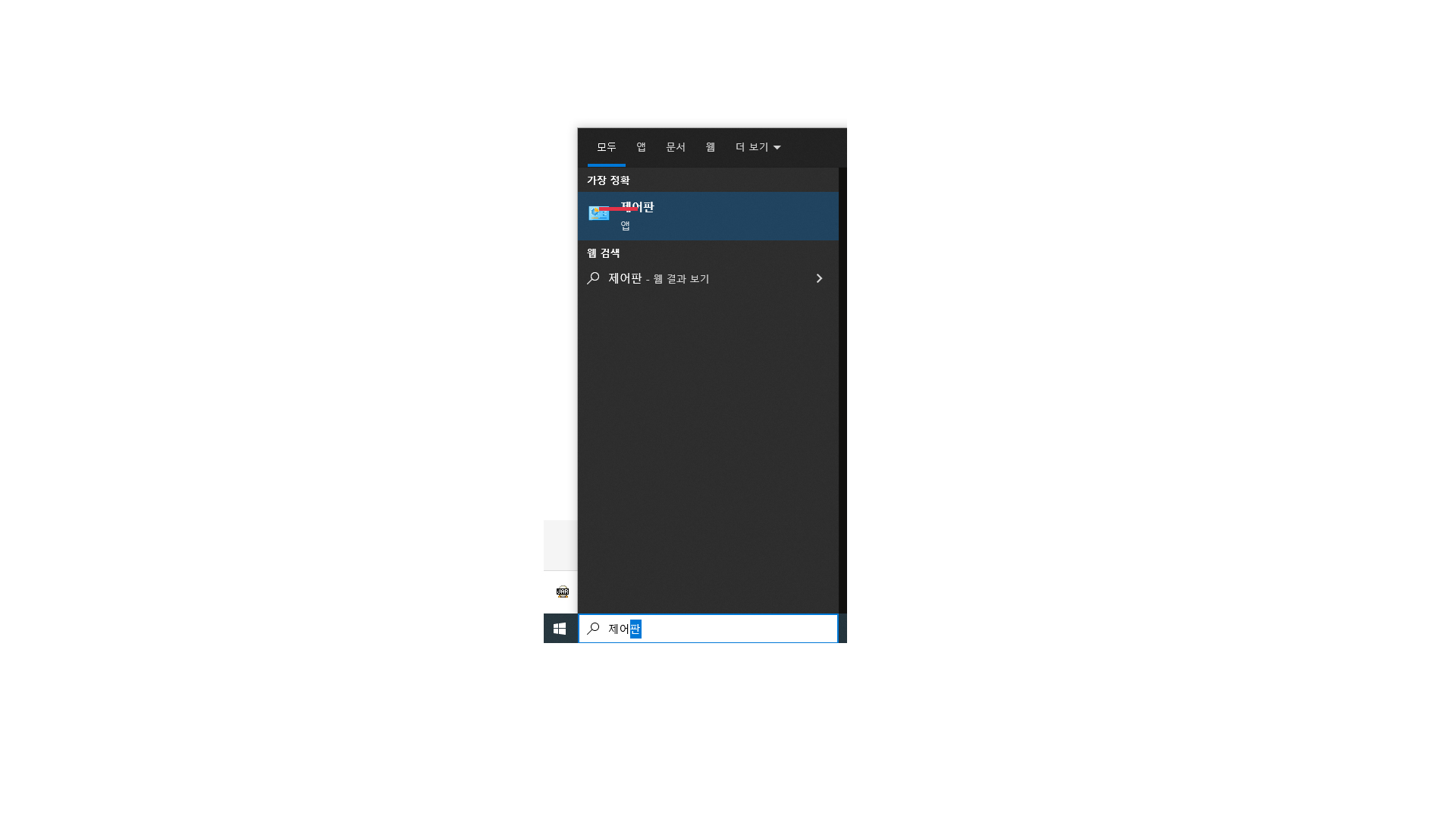 윈도우 검색창에 제어판을 검색 후