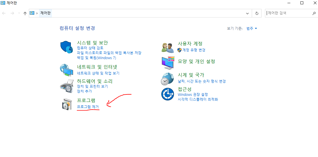 프로그램 제거를 클릭