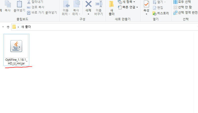 java -jar OptiFine_1.18.1_HD_U_H4.jar 를 입력 후 저장해주세요.