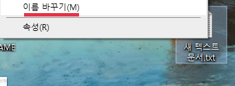 저장 후 마우스 우클릭 - 이름 바꾸기 클릭