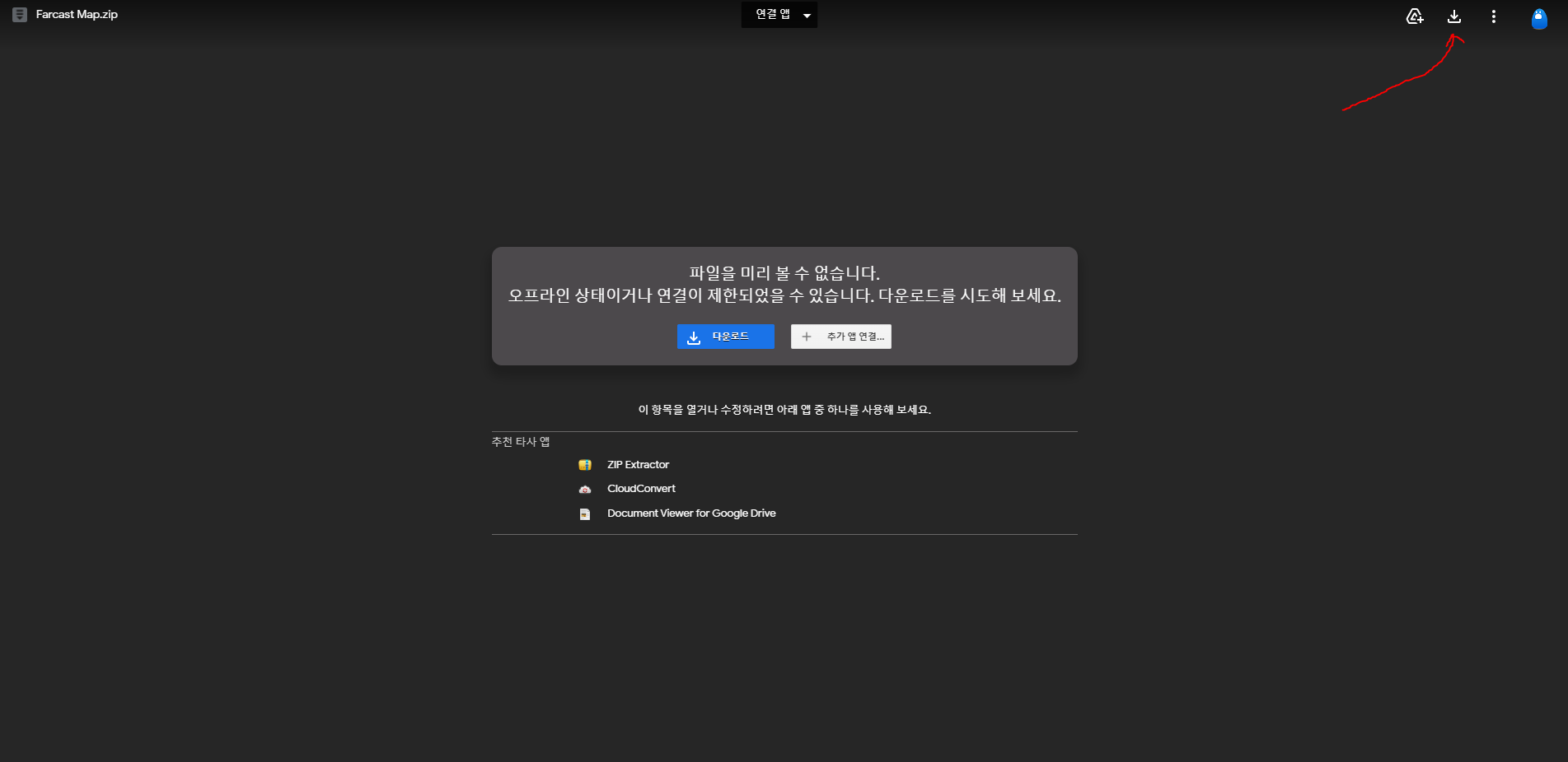 오른쪽 상단에 다운로드 아이콘을 클릭해서